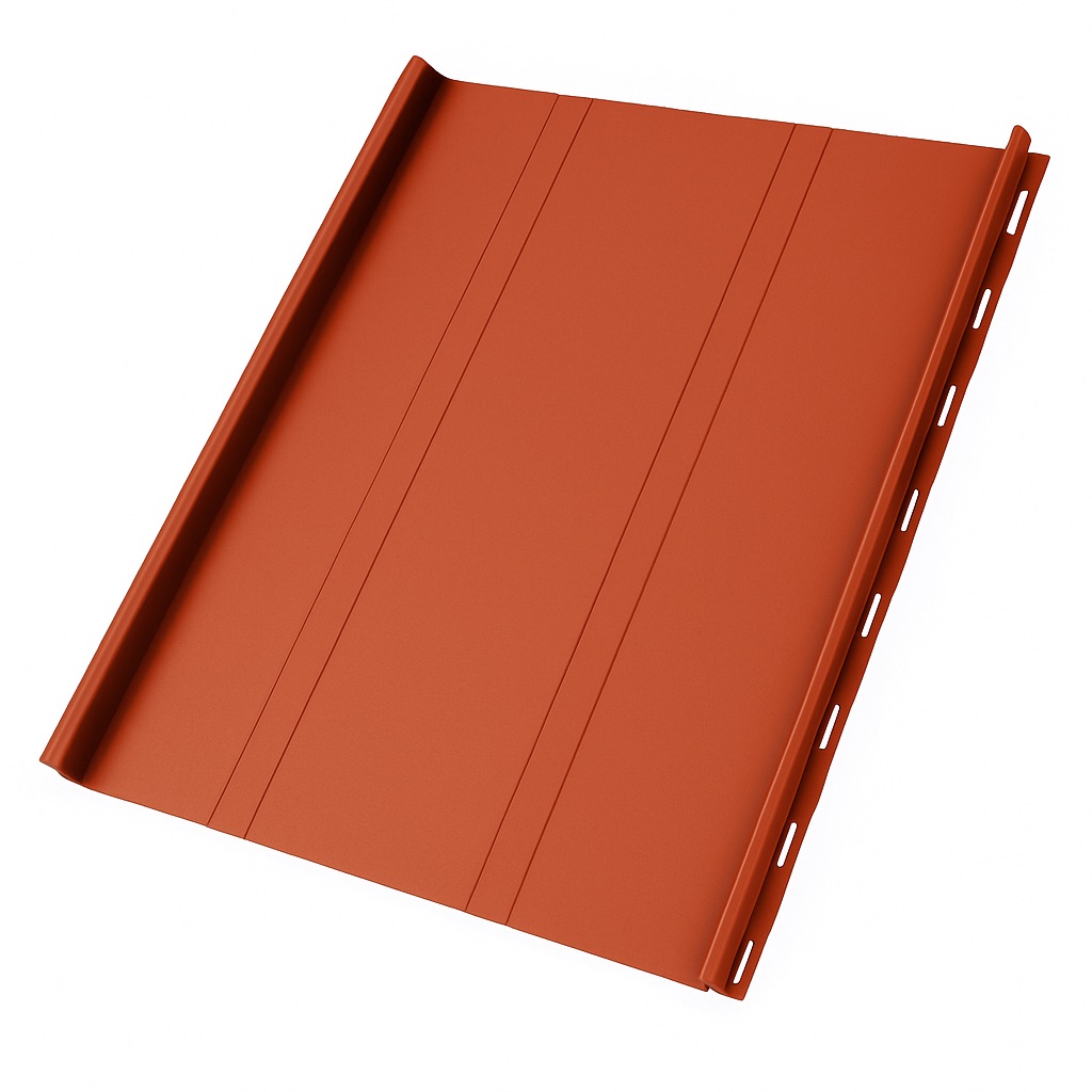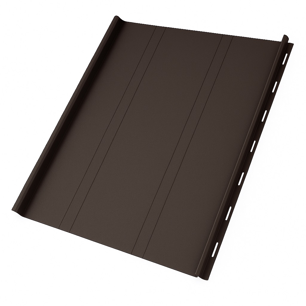 Панели производятся из оцинкованной стали с полимерным покрытием толщиной 0,5 мм, доступны в различных ширинах и вариантах цветов по палитре RAL. Благодаря системе клик-фальца монтаж остаётся быстрым и удобным — панели фиксируются вручную без применения специализированного оборудования, сохраняя герметичность и эстетичность покрытия.