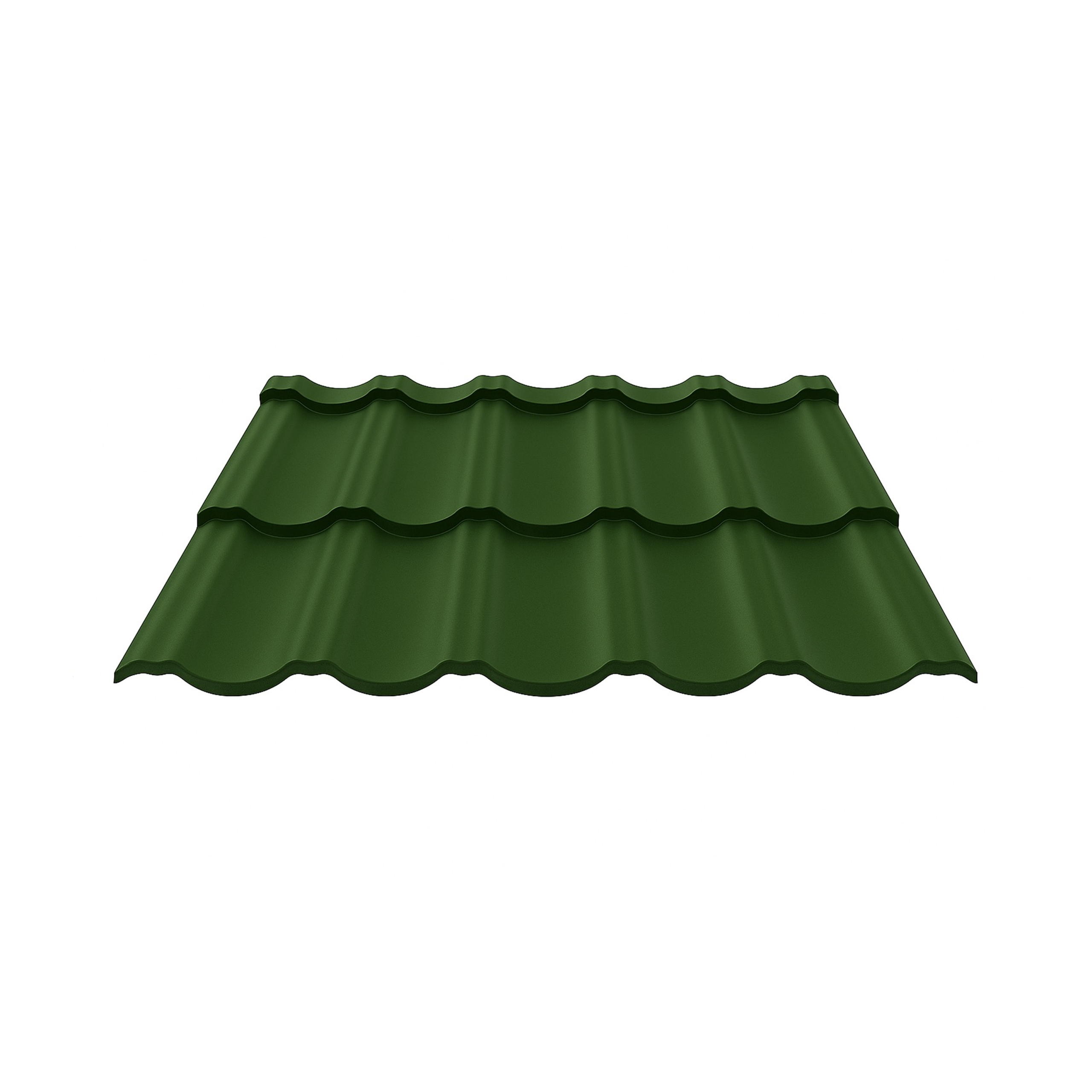 Металлочерепица Moderna — это современное кровельное решение, сочетающее в себе выразительный дизайн, надежность и долговечность. Благодаря своей форме с плавными волнами и матовому покрытию хромового зеленого цвета RAL 6020, она придает крыше благородный и солидный внешний вид. Такая черепица прекрасно впишется как в архитектуру классического коттеджа, так и в современные стили — от минимализма до скандинавского.